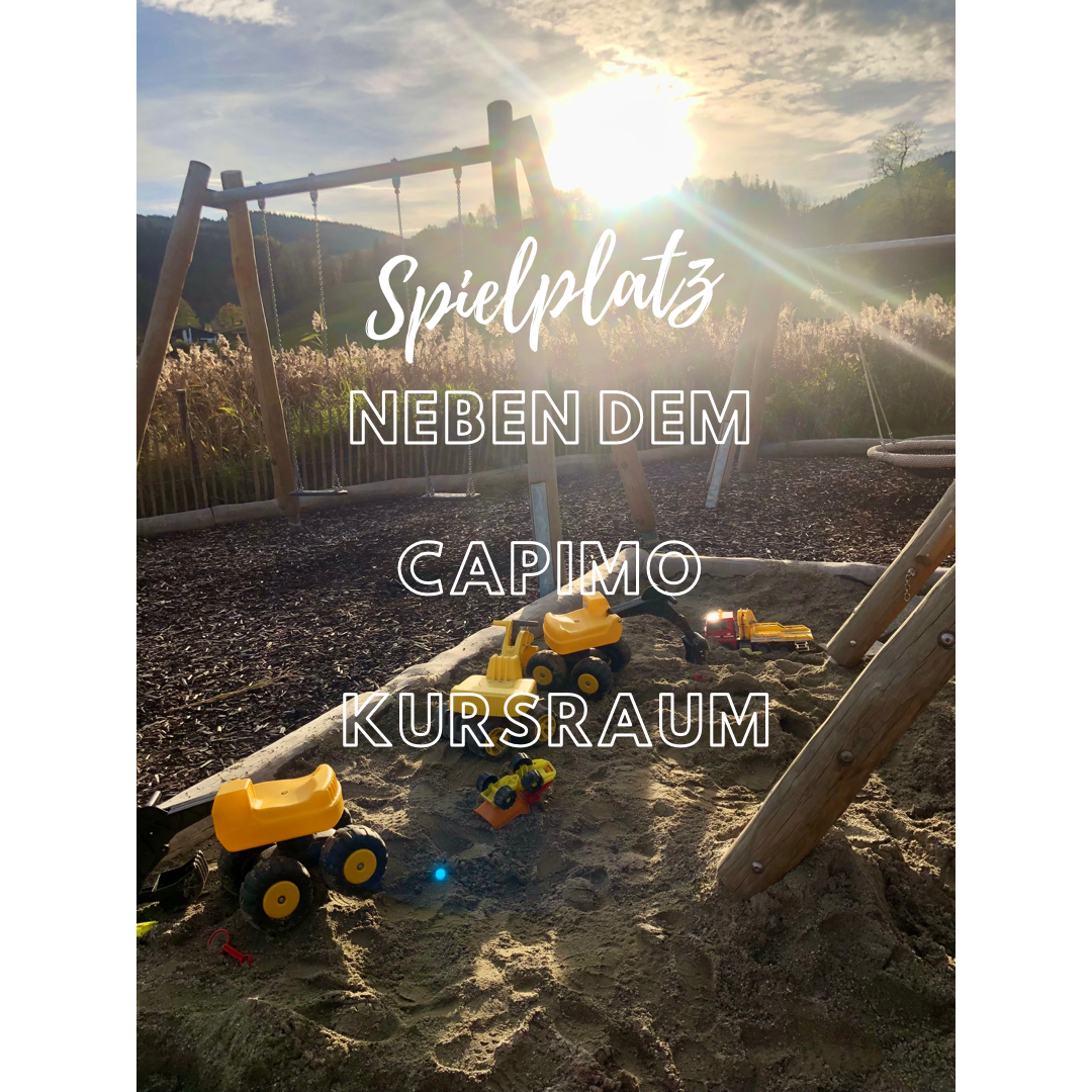 Außerdem gibt es direkt neben dem Eingangsbereich einen tollen Spielplatz inklusive Spielzeug, Bobbycars etc. , den ihr sehr gerne vor und/oder nach der Kursstunde zum Spielen & Ratschen nutzen dürft :-)